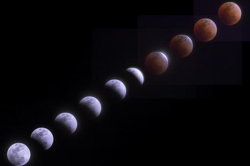 太陽、地球、月が一直線に並び、月が地球の影に入ることで欠けたり暗くなったりして見える現象です。